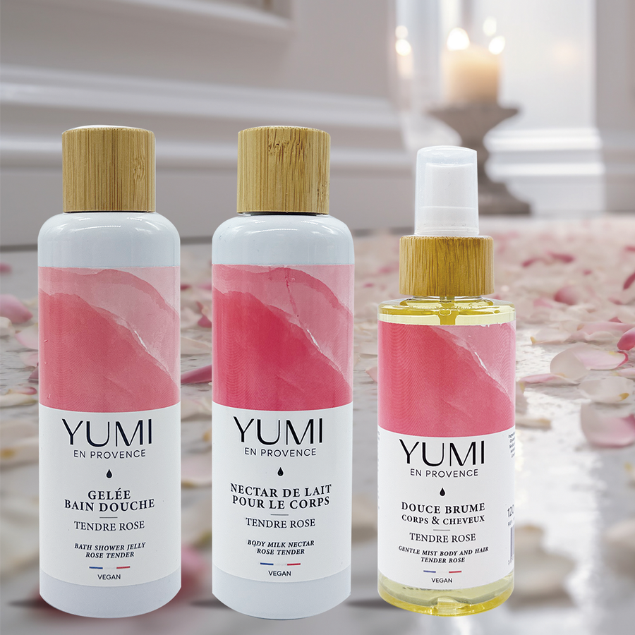 Upptäck vår exklusiva kollektion Yumi en Provence, som förkroppsligar Provences hjärta, en plats berömd för sin betagande charm och dess naturliga skönhetsingredienser.