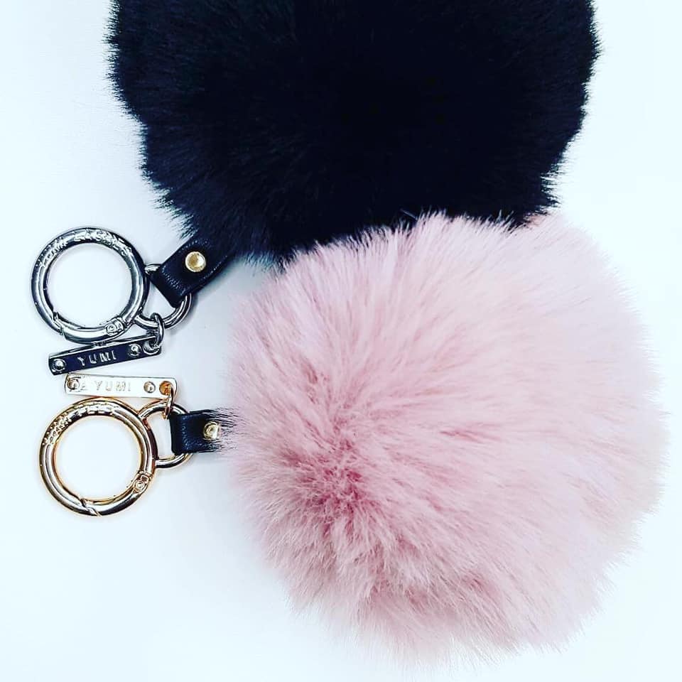 väsksmycke nyckelring pälsboll pälstofs pom pom