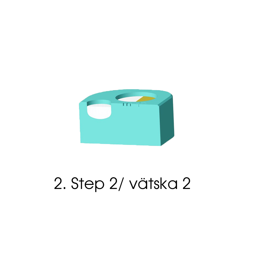 Droppa 2-3 droppar i "KL"-behållaren, detta räcker för båda ögonen.