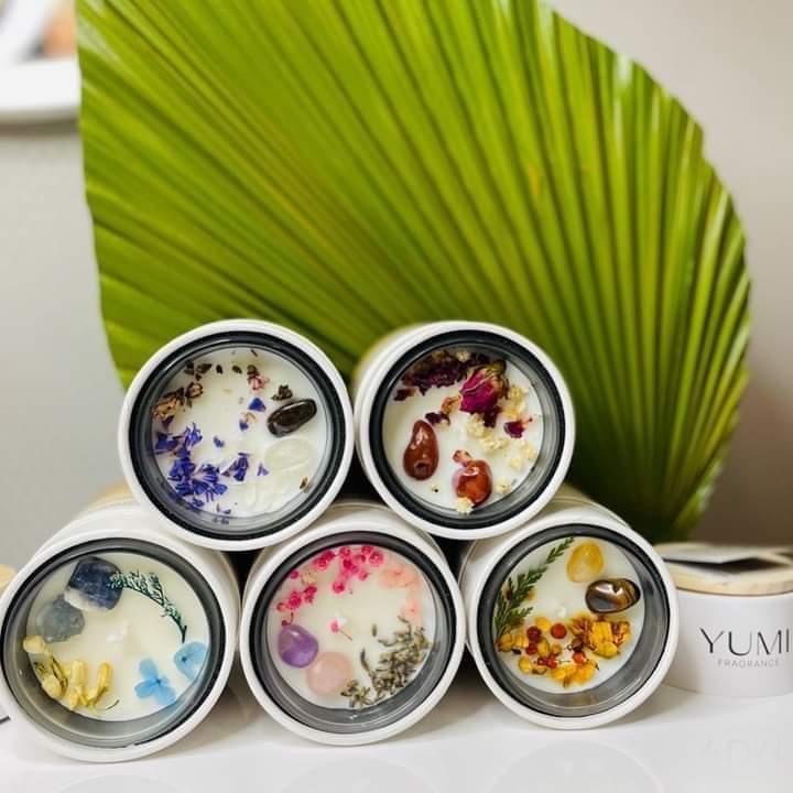 Ayurvedisk sojavaxljus med äkta kristaller, Douce Aura