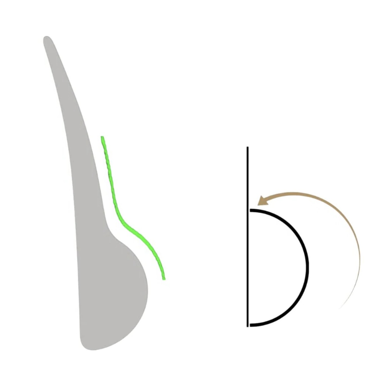 MIA PRO MAX har en unik form: en rundad bas vid roten som ger en stabil och naturlig böj – även på fransar som annars är svåra att forma, som tjocka, tunga eller nedåtvända fransar.